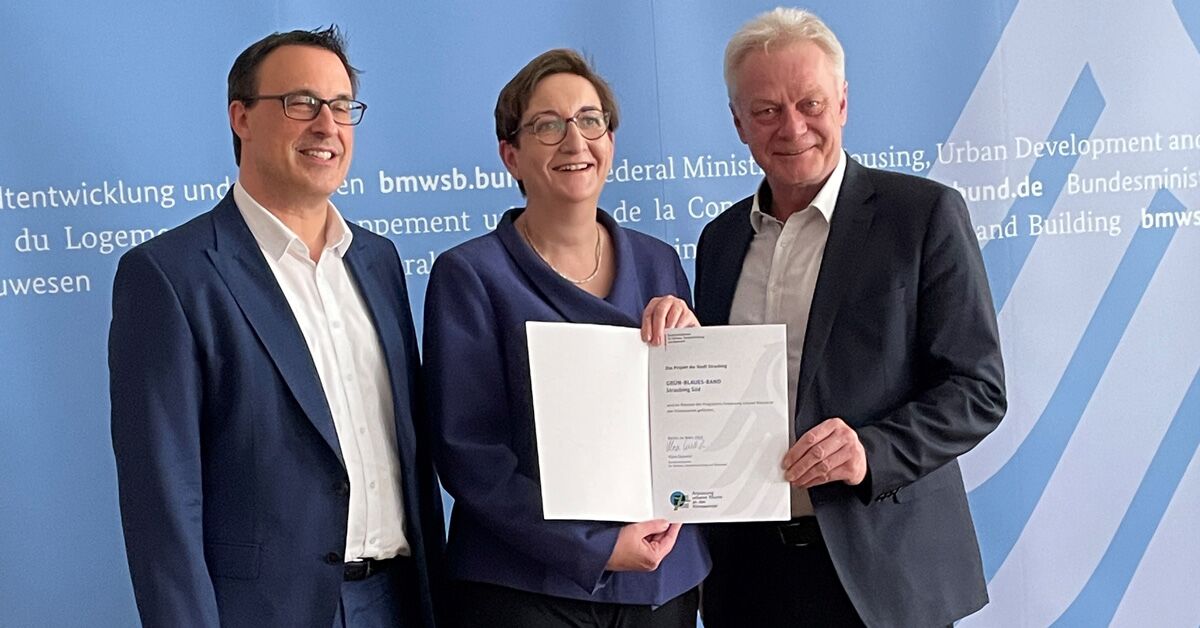 Bereits im Jahr 2022 hatte sich die Stadt Straubing mit dem Projekt für das Bundesförderprogramm beworben, jetzt können die Planungen für eine baldige Umsetzung beginnen. Am Montag dieser Woche wurden die Förderbescheide durch Bundesministerin Klara Geywitz im Bundesamt für Bauwesen in Berlin übergeben.